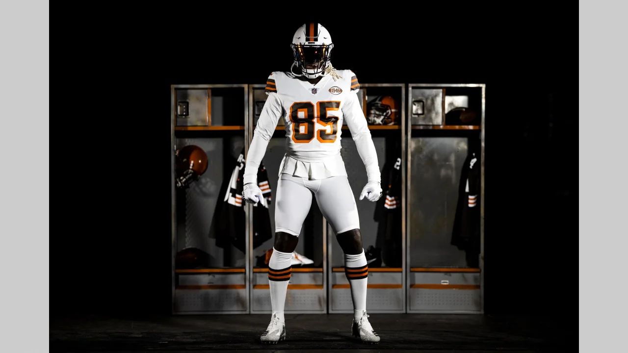 For the first time since 1951, the Browns will debut a white alternate helmet. It features an orange and brown stripe down the middle. For the first time in 70 years, they will wear another color other than orange helmets. Cleveland will wear its 2021 throwback jerseys with the white helmet when they play against the Steelers in Week 2, the 49ers in Week 6, and the Jets in Week 17. The white helmets and fan-voted Brown's dawg logo and are part of the team's initiative to involve the fans. The white helmet is crisp and would have been a great focal point to feature the new dawg logo, but baby steps.