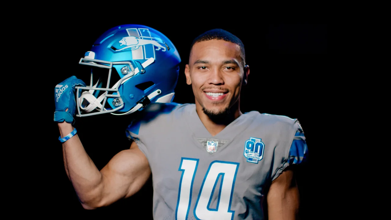Something old, something new, something borrowed, and certainly, something blue. The Lion's new Honolulu blue helmet harkens to the likeness of a classic Ford Mustang. The design commemorates the Lion's 90th season. Styled with a retro "stalking lion" logo, Mustang stripes, a matte signature gray facemask, and the shell is a blue that has never been worn in the NFL. The new helmet will be worn with the Lion's all-gray alternate uniform when they play against the Raiders in Week 8 and the Vikings in Week 18. What better way to design a helmet than model it after a classic car?